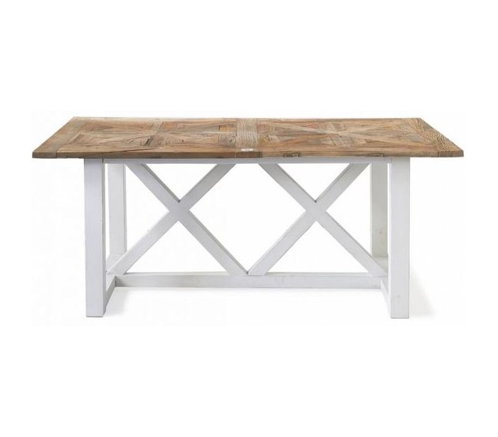 Spisebord i genanvendt elmetræ 180 x 90 cm - Antik hvid/Natur