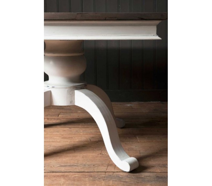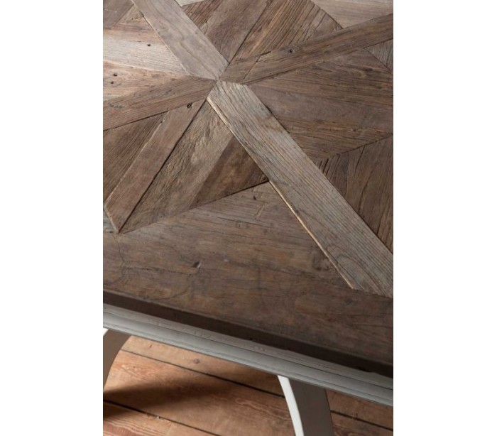 Spisebord i genanvendt elmetræ 130 x 130 cm - Antik hvid/Natur
