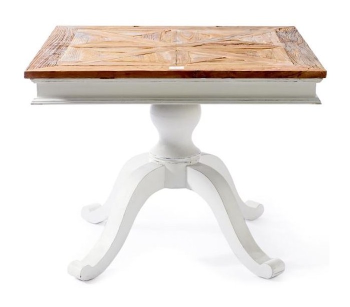 Spisebord i genanvendt elmetræ 100 x 100 cm - Antik hvid/Natur