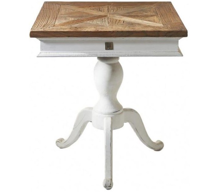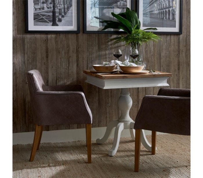 Spisebord i genanvendt elmetræ 70 x 70 cm - Antik hvid/Natur