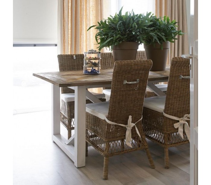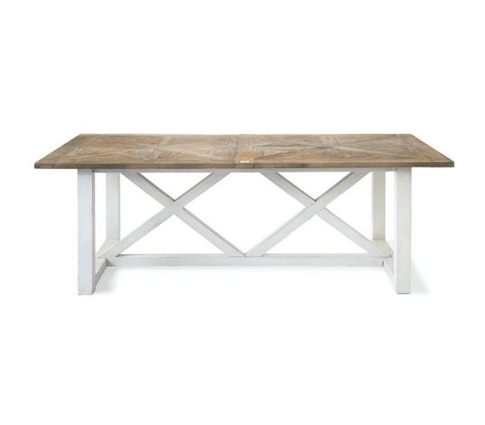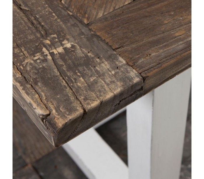 Spisebord i genanvendt elmetræ 220 x 100 cm - Antik hvid/Natur