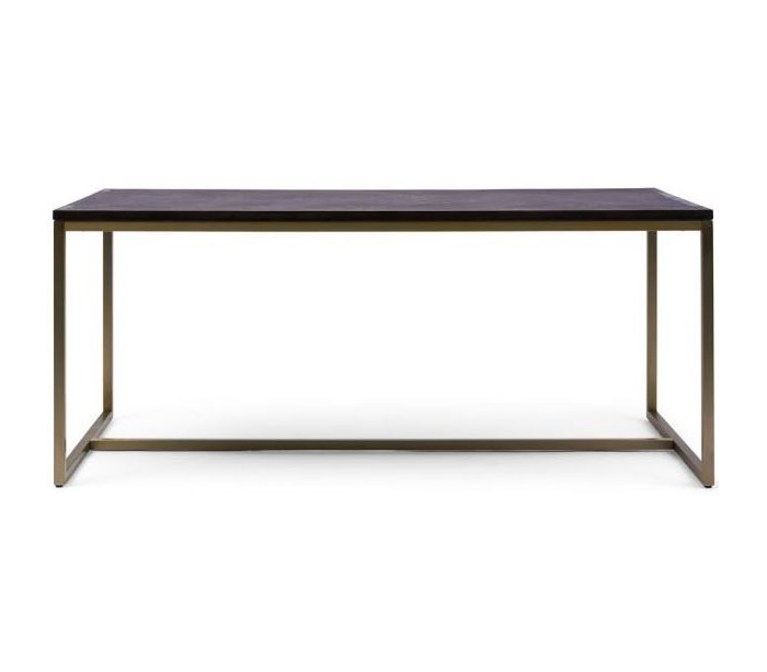Spisebord fra Riviera Maison, udført i et moderne design af massiv sortlakeret egetræ og antik guldfarvet rustfri stål. Spisebordet måler 78 cm i højden og 180 cm i bredde og 90 cm i dybde.