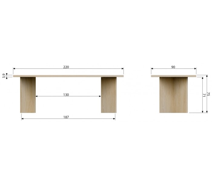 Spisebord i egetræsfinér 220 x 90 cm - Natur