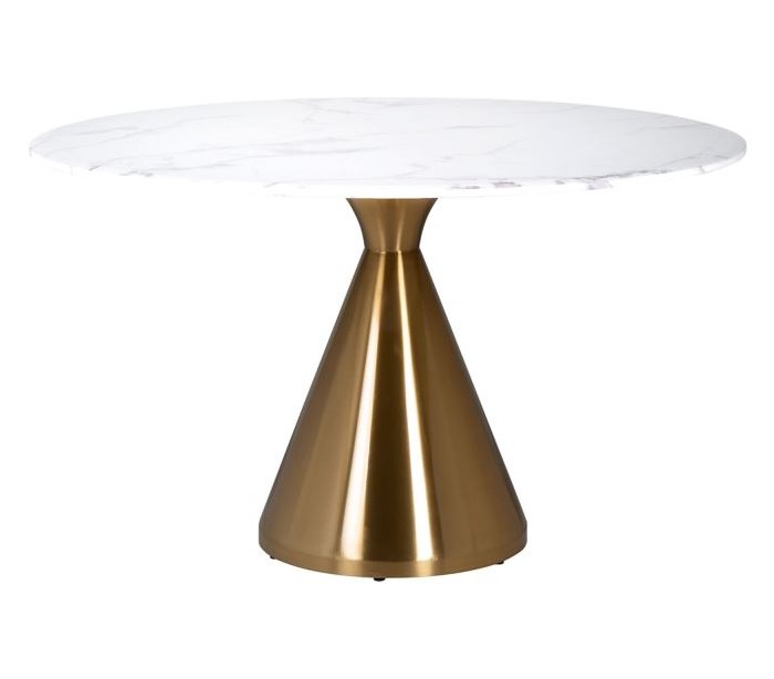 Spisebord i et design fra hollandske Richmond Interiors. Bordet er fremstillet i børstet messinglakeret stål og hvid marmor og måler 130 cm i diameter og 76 cm i højden.