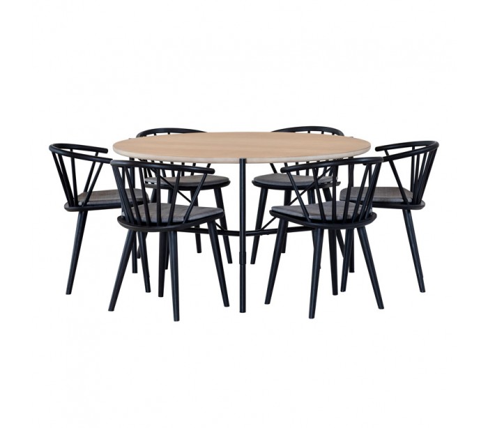 Ale rundt spisebord i egetræsfinér og metal Ø135 cm - Sort/Hvidolieret