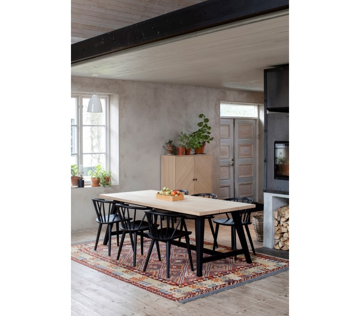 Bedrock spisebord i egetræsfinér og træ 220 x 95 cm - Sort/Hvidolieret eg