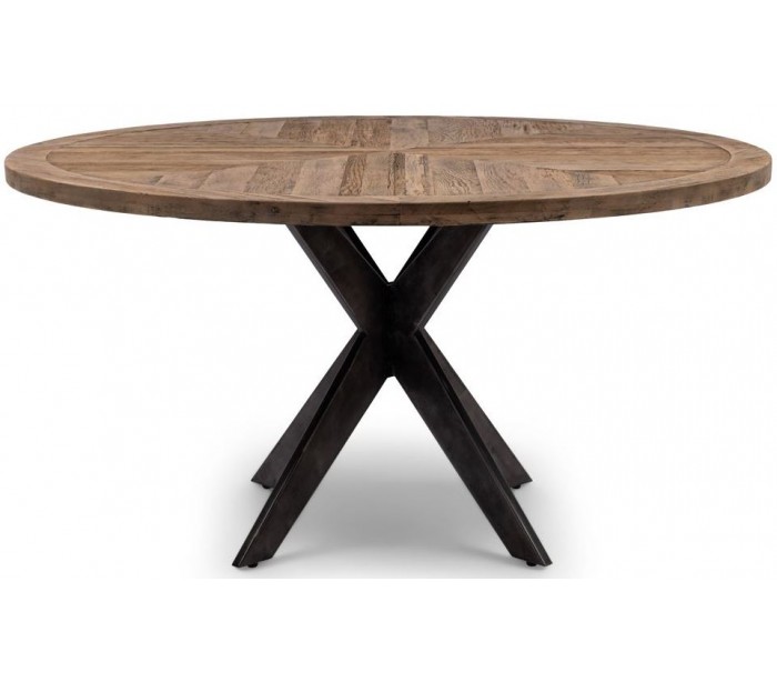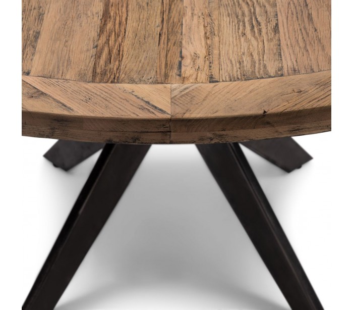 Rundt spisebord i genanvendt egetræ Ø150 cm - Industriel sort/Rustik natur