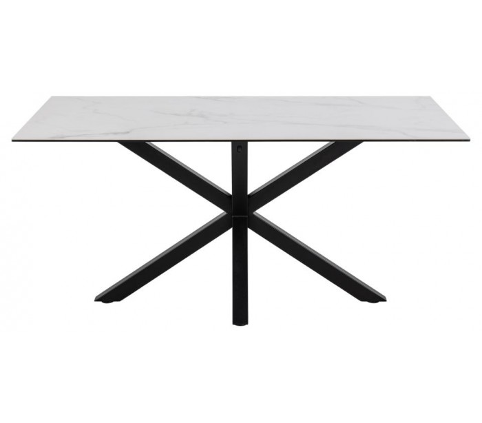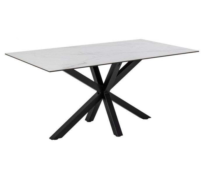 Spisebord udført i et design af sortlakeret metal og med bordplade i gråhvid keramik. Spisebordet måler 75,5 cm i højden og 160 x 90 cm i bredde og dybde.
