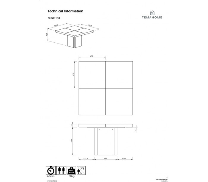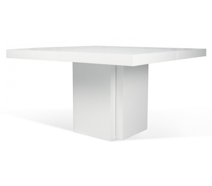 TemaHome Dusk spisebord udført i et design af hvid højglans lakeret melamin og finér. Spisebordet måler 75 cm i højden og 130 x 130 cm i bredde og dybde.