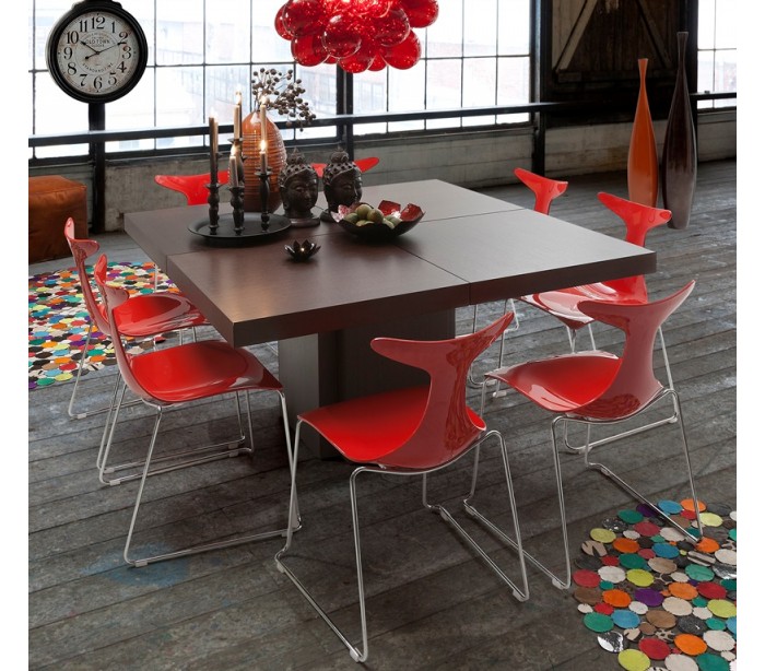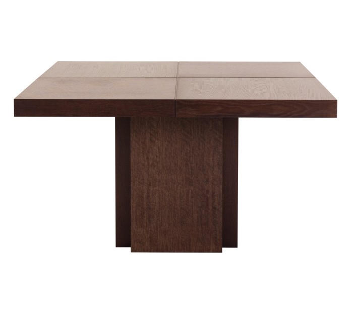 TemaHome Dusk spisebord udført i et design af chokoladefarvet melamin og finér. Spisebordet måler 75 cm i højden og 130 x 130 cm i bredde og dybde.
