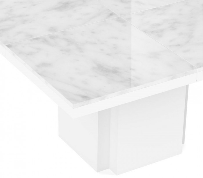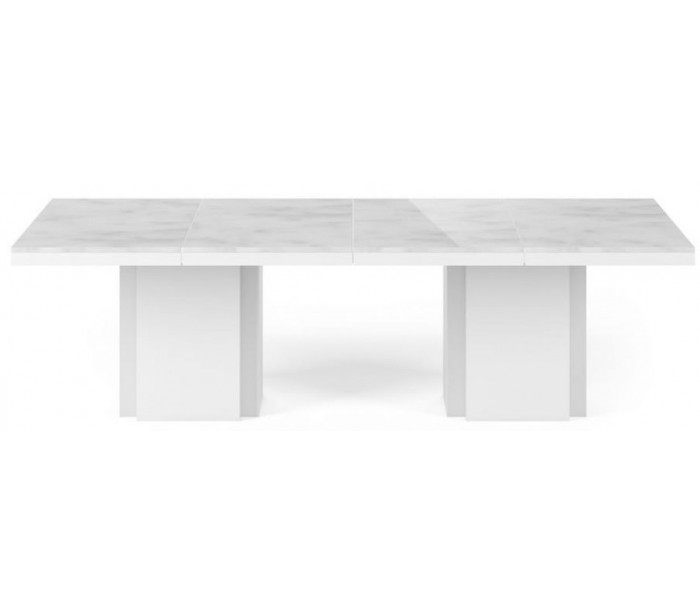 TemaHome Dusk spisebord i finér og marmor 262 x 130 cm - Mat hvid/Hvid marmor