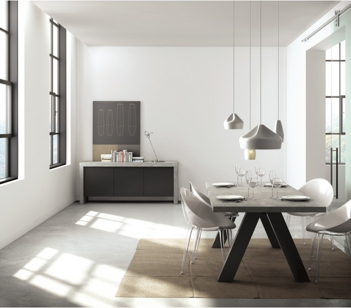 TemaHome Apex spisebord i finér 200 x 100 cm - Sort/Betongrå