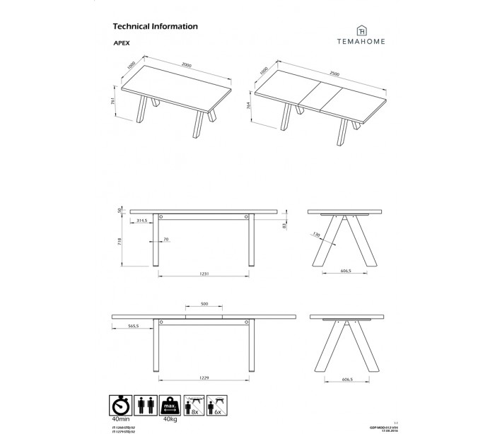 TemaHome Apex spisebord udført i et design af sortlakeret og betongrå finér. Spisebordet måler 76 cm i højden og 200 x 100 cm i bredde og dybde. Højde fra gulv til bordpladen er 70 cm.