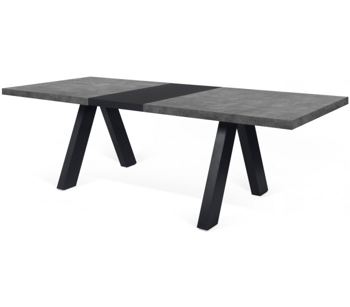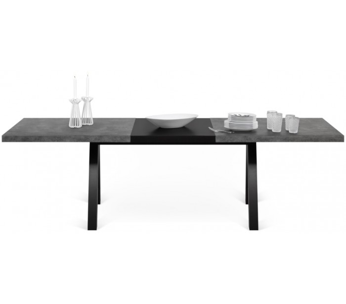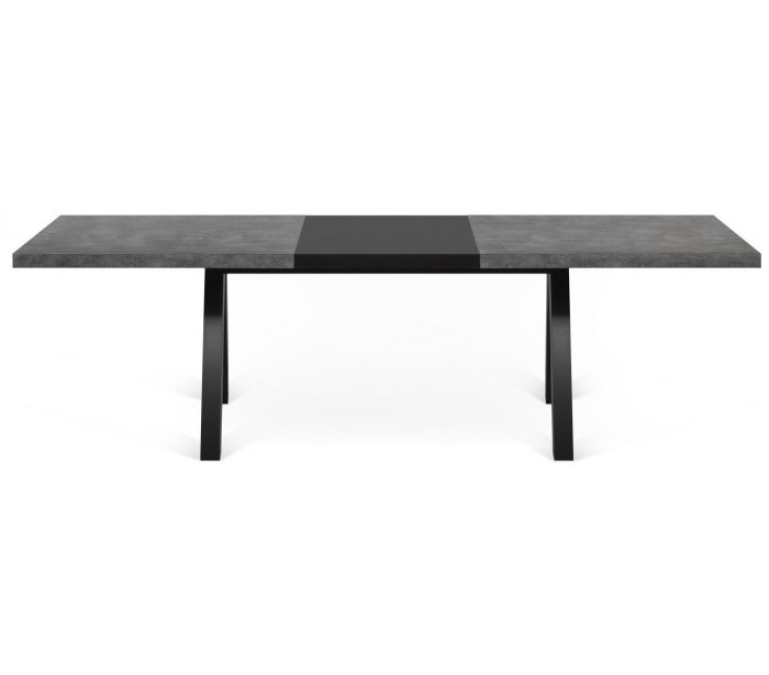 TemaHome Apex spisebord med tillægsplade, udført i et design af sortlakeret og betongrå finér. Spisebordet måler 76 cm i højden og 200 - 250 x 100 cm i bredde og dybde. Højde fra gulv til bordpladen er 70 cm.