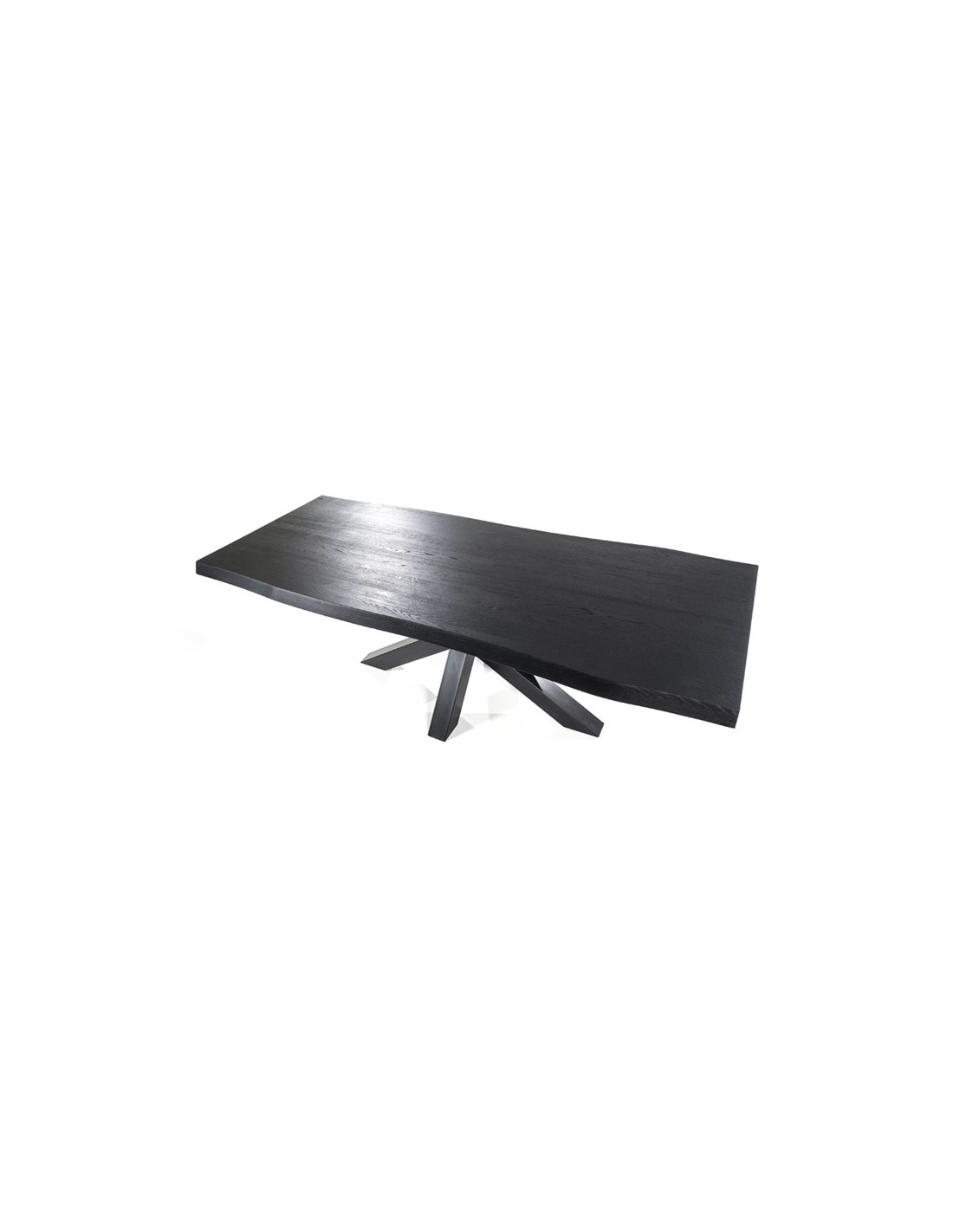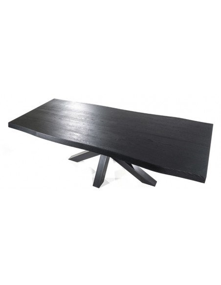 Tree spisebord fremstillet med bordplade i sortlakeret egetræ med bølgede naturkanter, og stel i sortlakeret stål. Spisebordet måler 77 cm i højden og 200 x 100 cm i bredde og dybde.