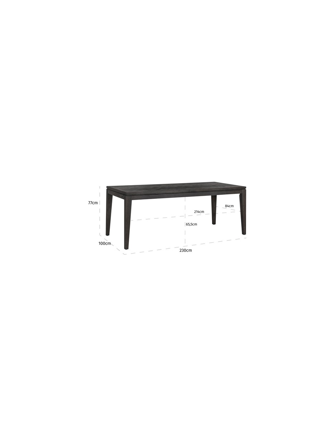 Spisebord i et design fra hollandske Richmond Interiors. Spisebordet er fremstillet bejset sort egetræ. Bordet måler 230 x 100 cm i bredde og dybde og 77 cm i højden.