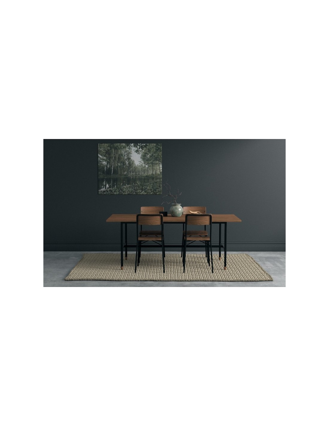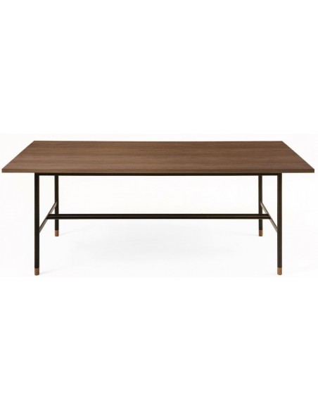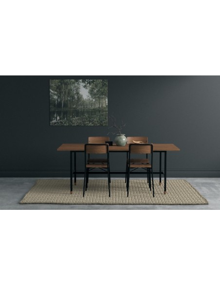 Spisebord fra Woodman, udført i et moderne design af metal og finér. Spisebordet måler 200 x 95 cm i bredde og dybde og 75 cm i højden.