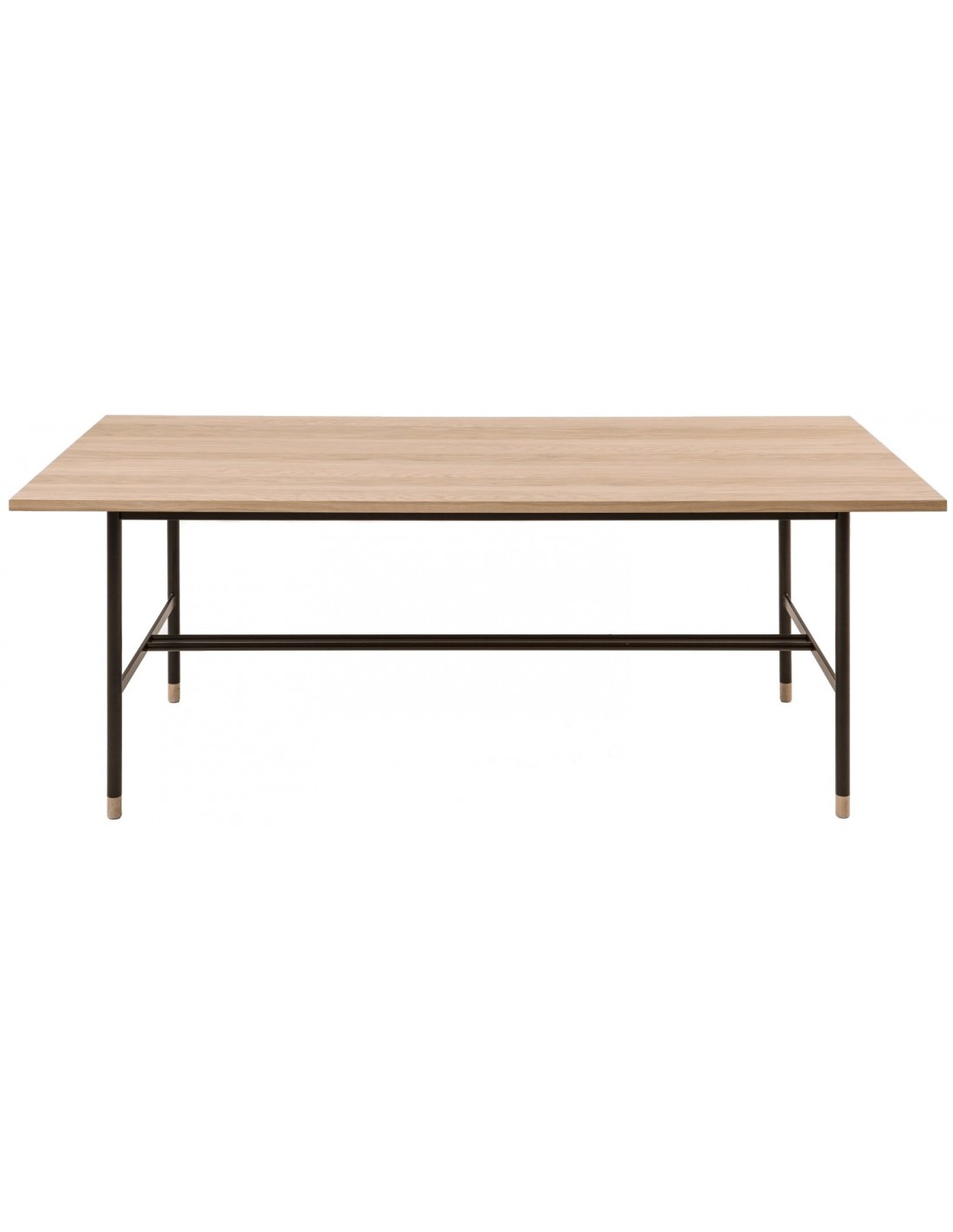 Spisebord fra Woodman, udført i et moderne design af metal og finér. Spisebordet måler 200 x 95 cm i bredde og dybde og 75 cm i højden.