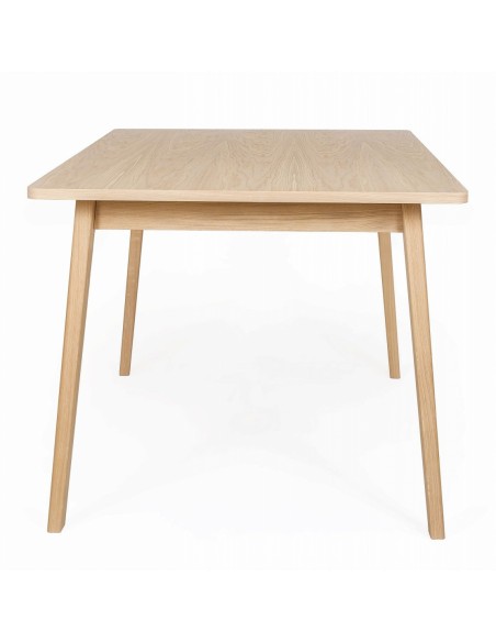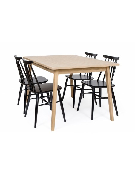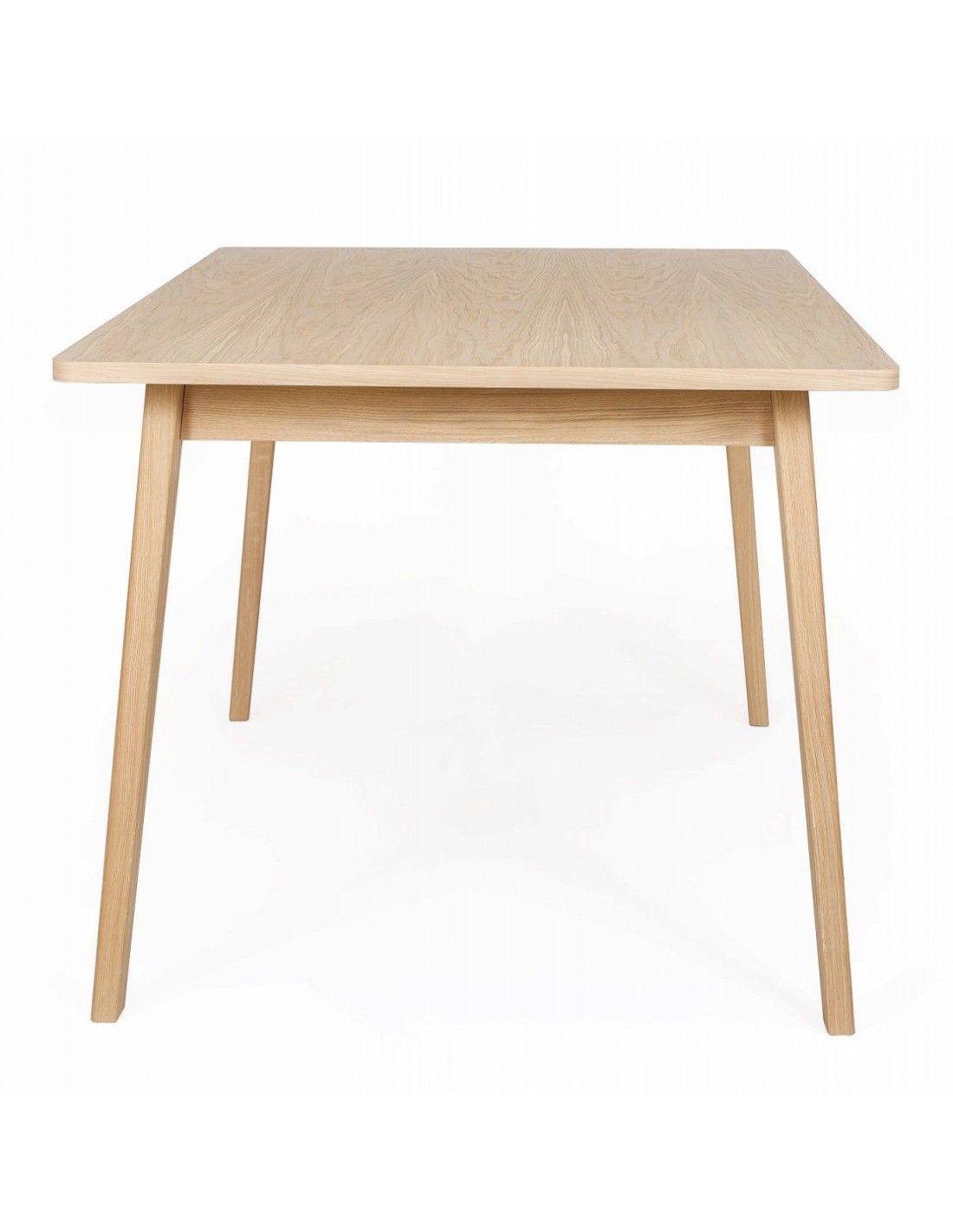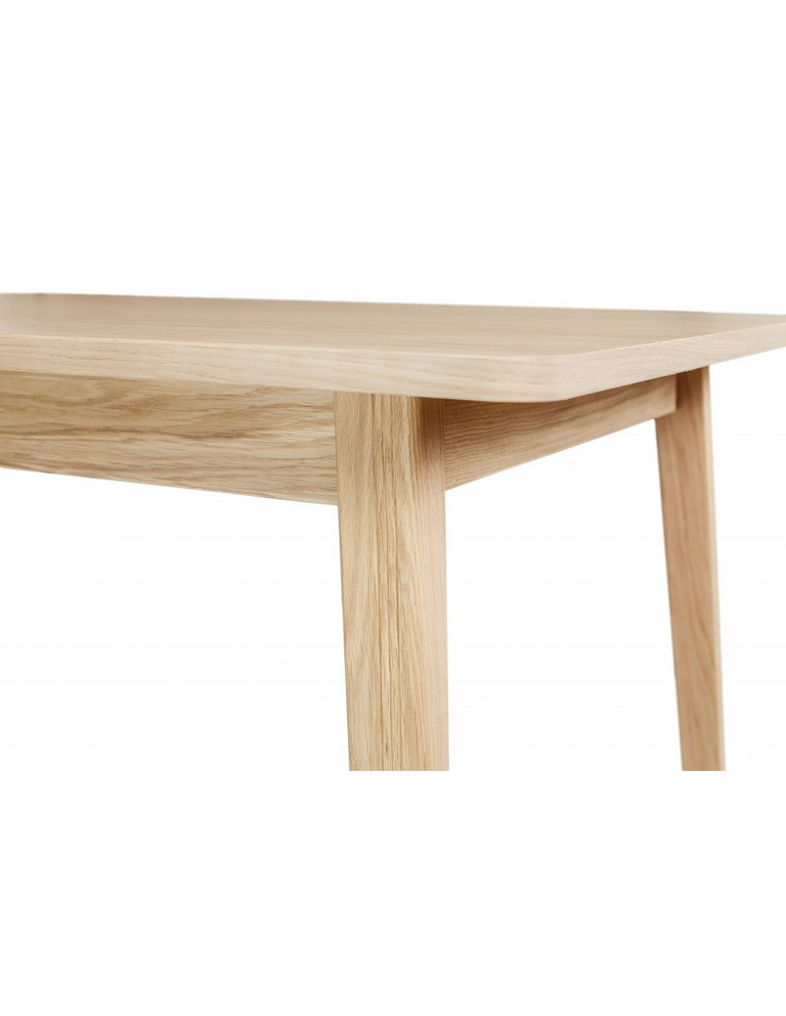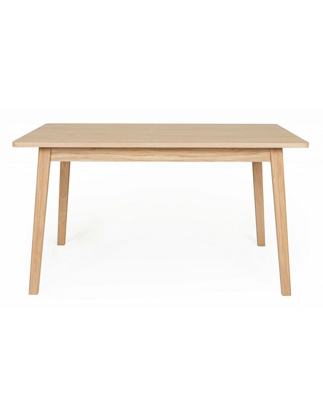 Spisebord fra Woodman, udført i et moderne design af egetræ og finér. Spisebordet måler 140 x 90 cm i bredde og dybde og 75 cm i højden.