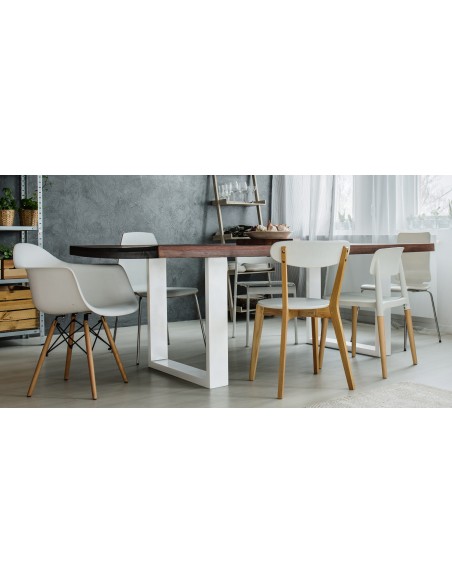 Sæt med 2 bordben til spisebord, udført i hvid pulverlakeret stål. Benene måler 90 cm i bredden og 72 cm i højden. Tykkelsen/Dybden på benene er 8 cm.