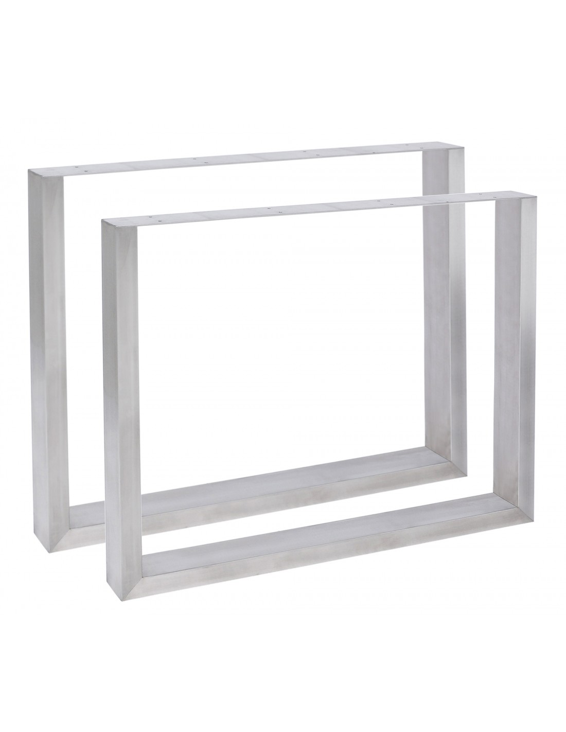 Sæt med 2 bordben til spisebord, udført i rustfri stål. Benene måler 80 cm i bredden og 72 cm i højden. Tykkelsen/Dybden på benene er 8 cm.