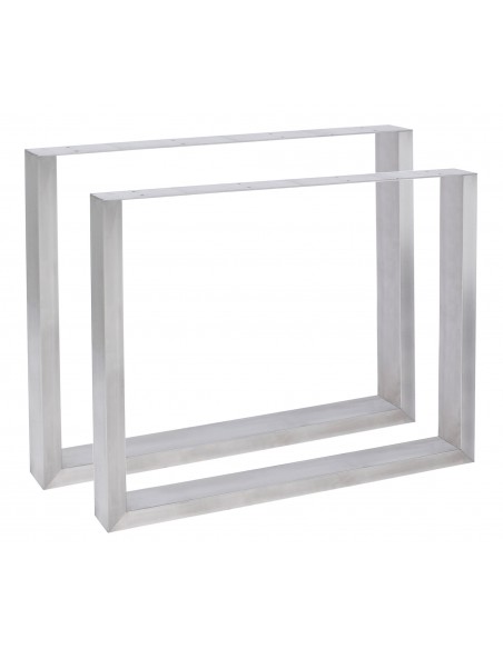 Sæt med 2 bordben til spisebord, udført i rustfri stål. Benene måler 70 cm i bredden og 72 cm i højden. Tykkelsen/Dybden på benene er 8 cm.