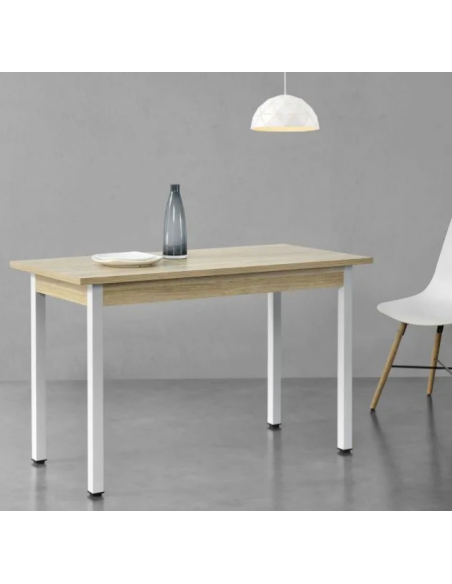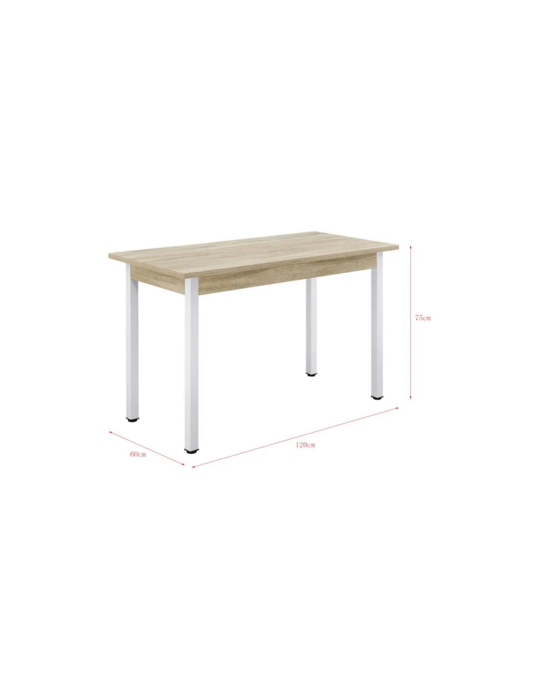 Spisebord i stål og mdf H75 x B120 x D60 cm - Hvid/Natur
