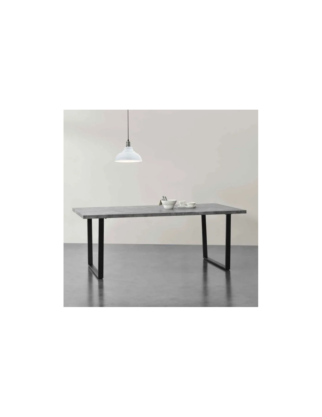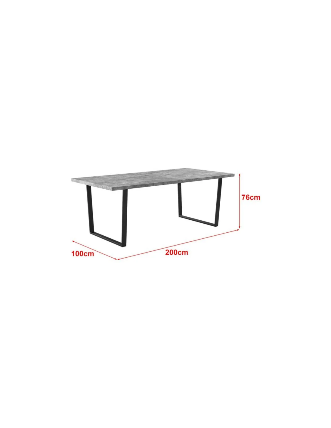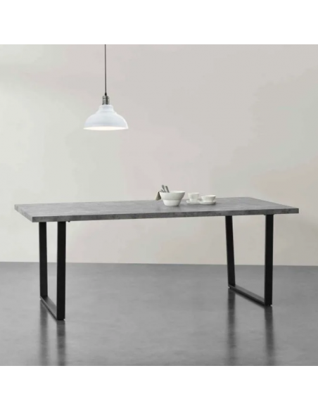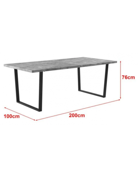 Spisebord i metal og mdf H76 x B200 x D100 cm - Sort/Betongrå