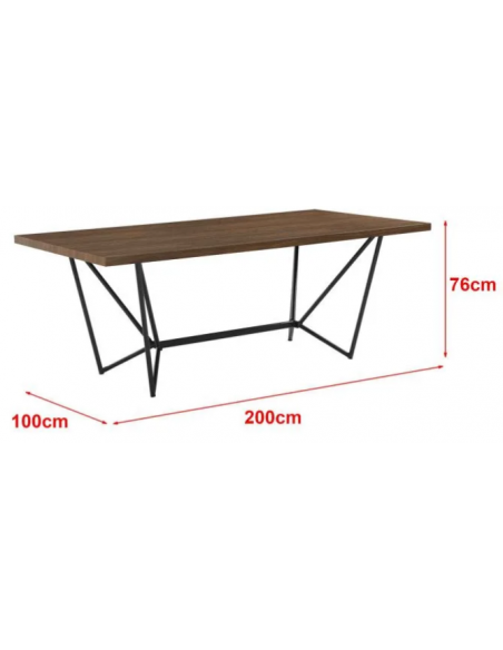 Spisebord udført i et design af metal og mdf. Spisebordet måler 76 cm i højden og 200 x 100 cm i bredde og dybde.
