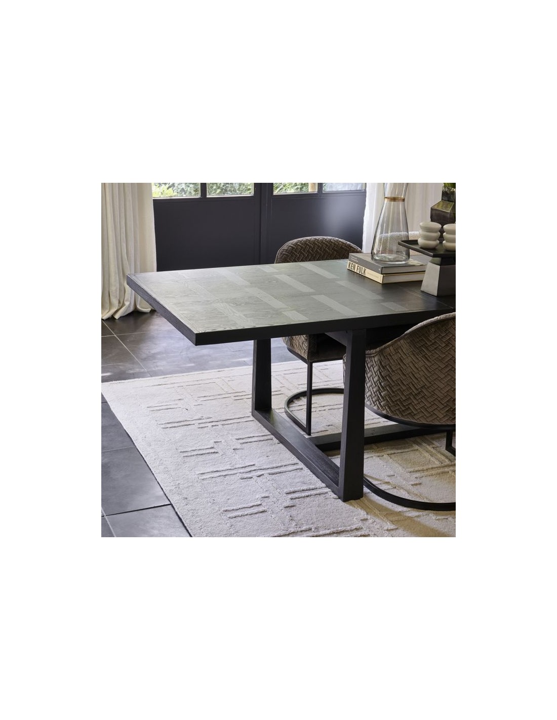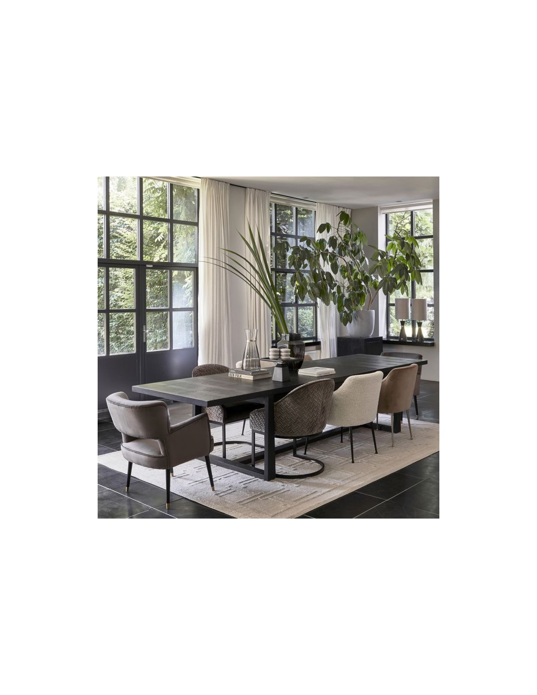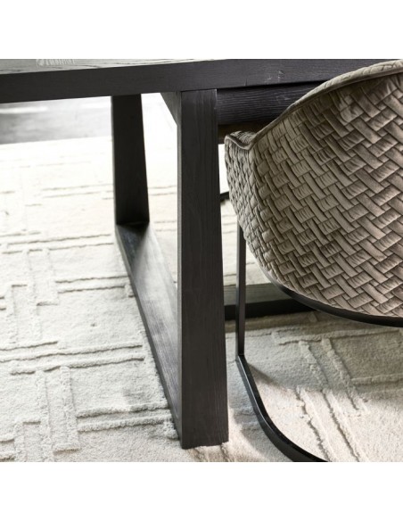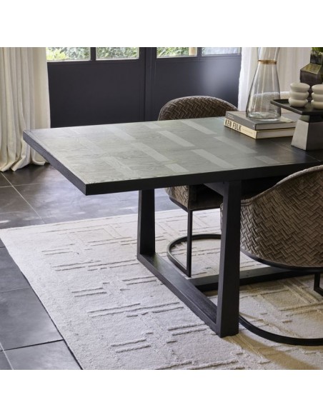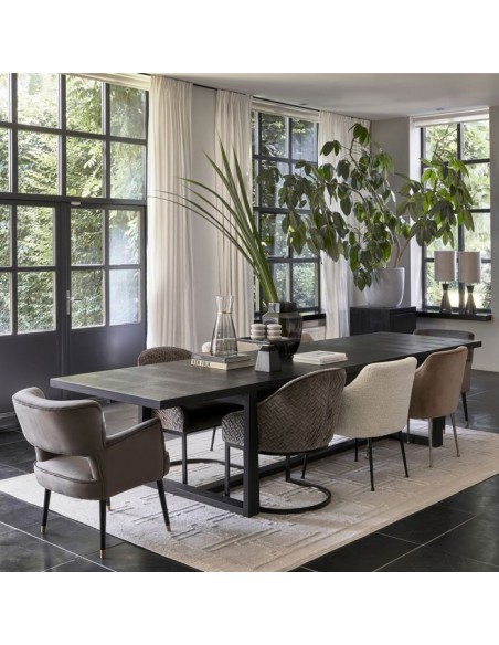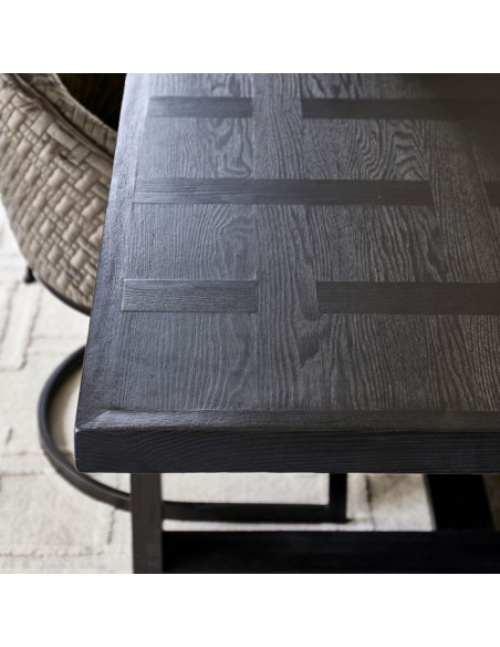 Riviera Maison spisebord med udtræk, udført i et design af sortlakeret ask træ. Spisebordet måler 78 cm i højden og 220 - 280 - 340 x 100 cm i bredde og dybde.