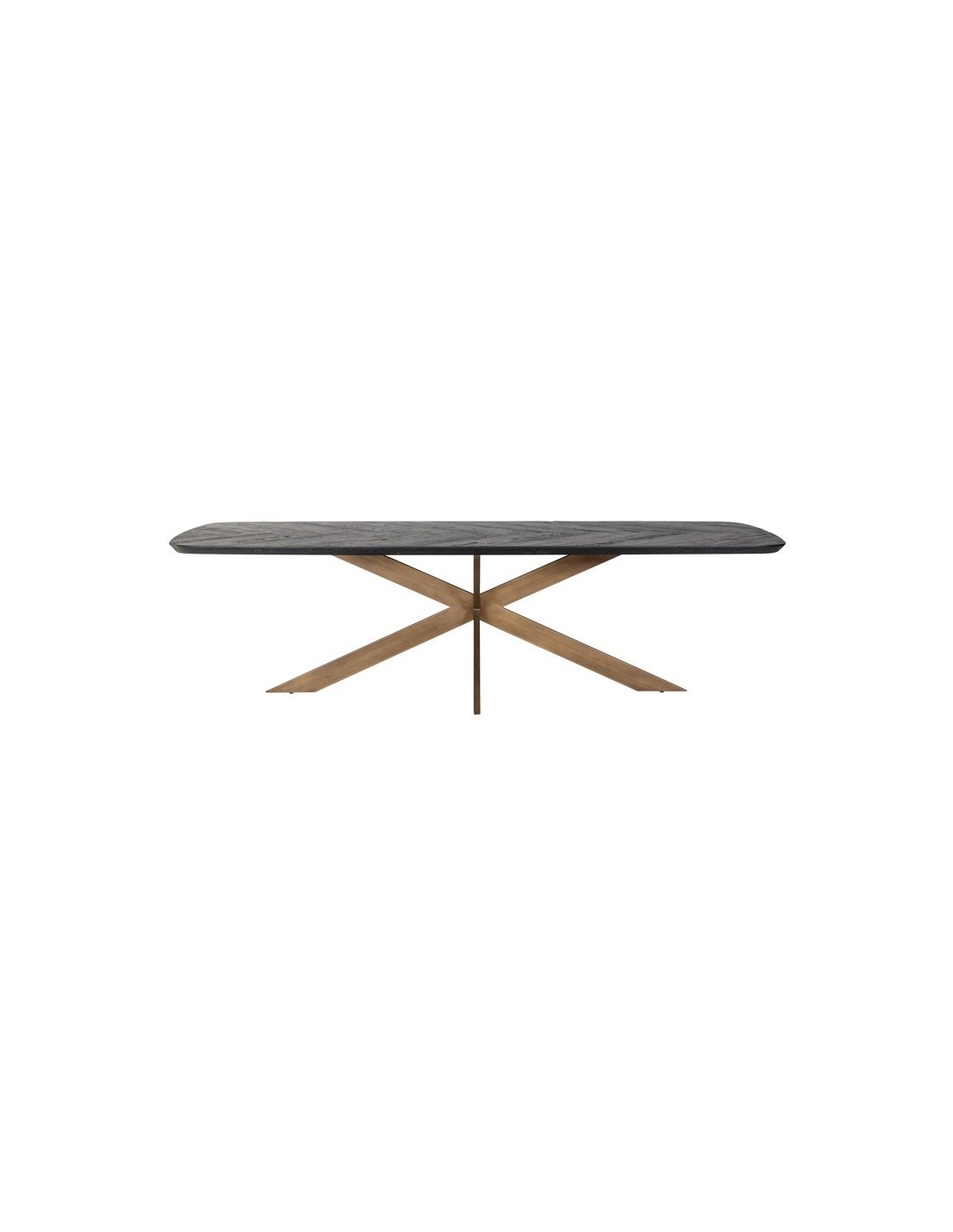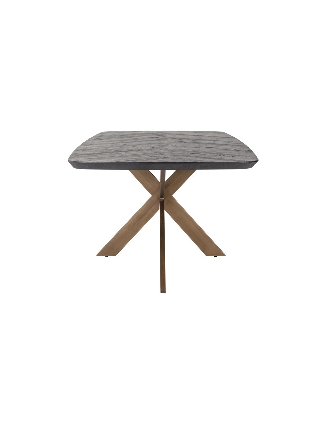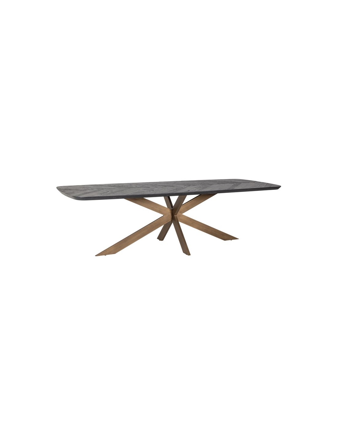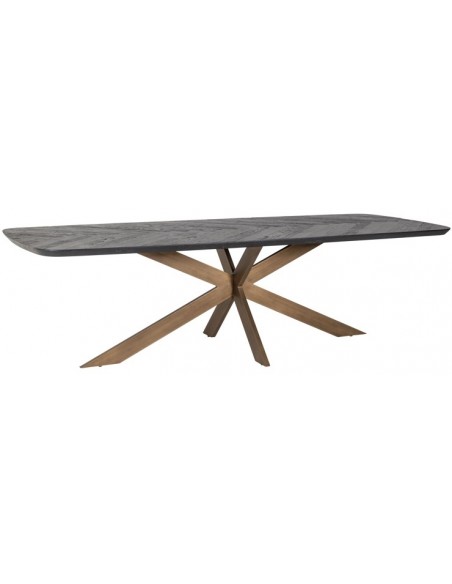 Hayley spisebord i stål og genanvendt egetræ 280 x 110 cm - Børstet bronze/Sort