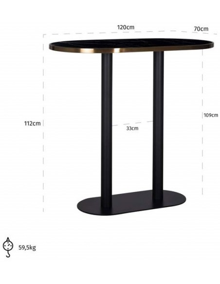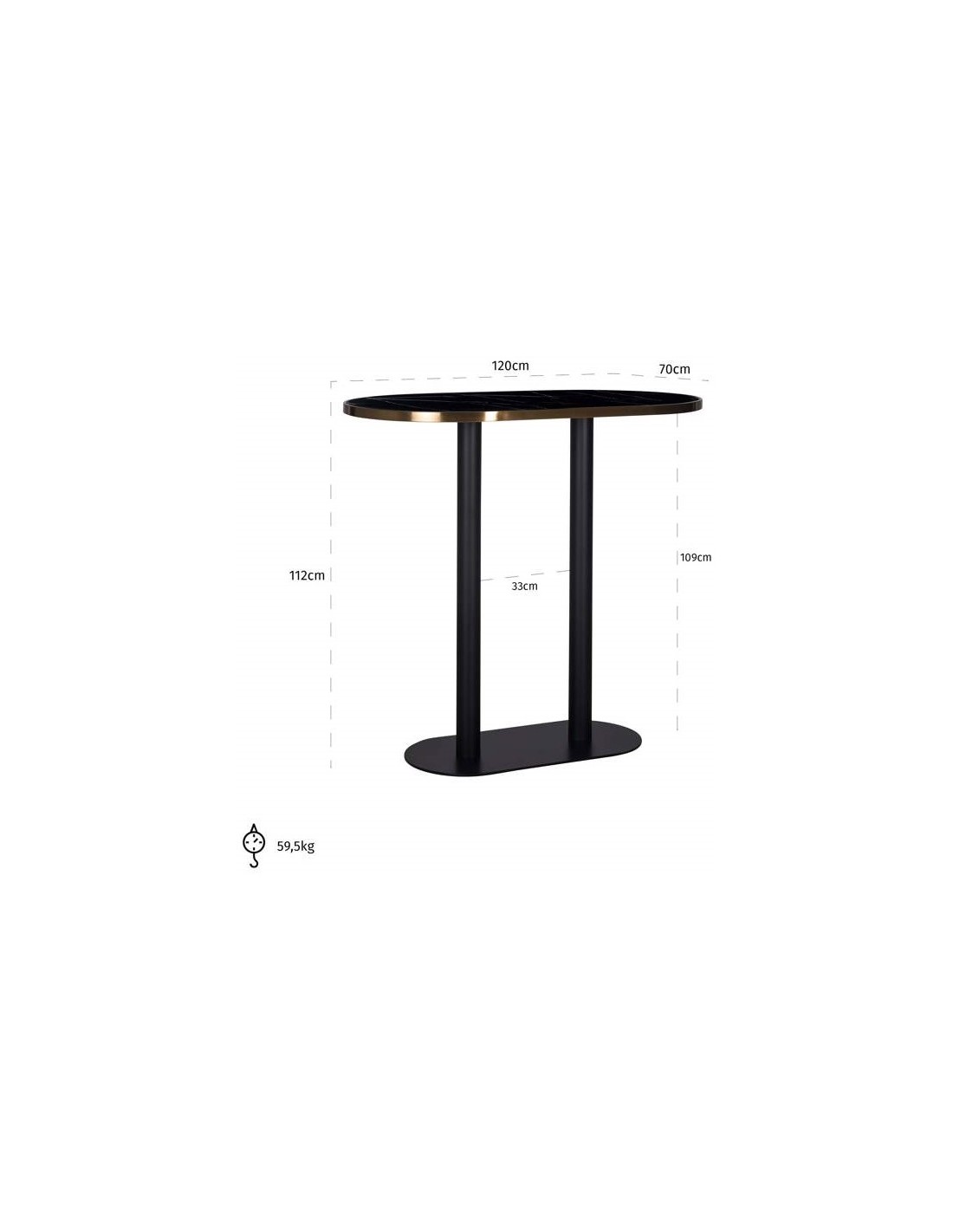 Zenza barbord i stål og faux marmor 120 x 70 cm - Sort/Messing/Sort marmor