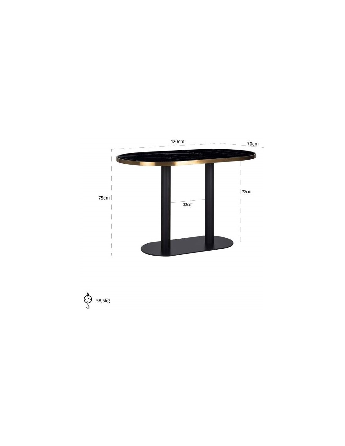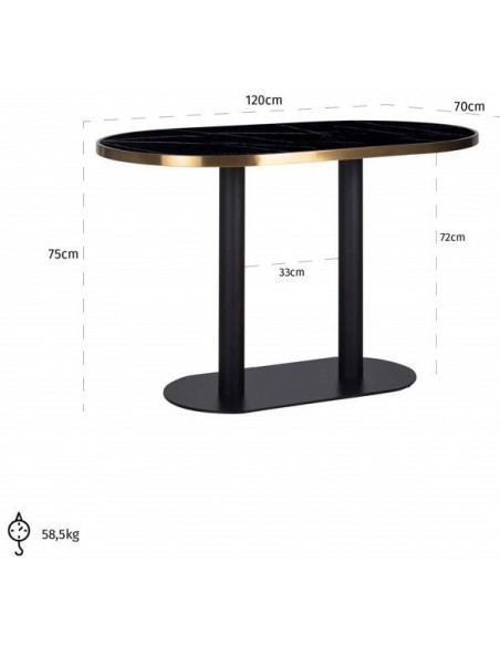 Zenza spisebord i stål og faux marmor 120 x 70 cm - Sort/Messing/Sort marmor