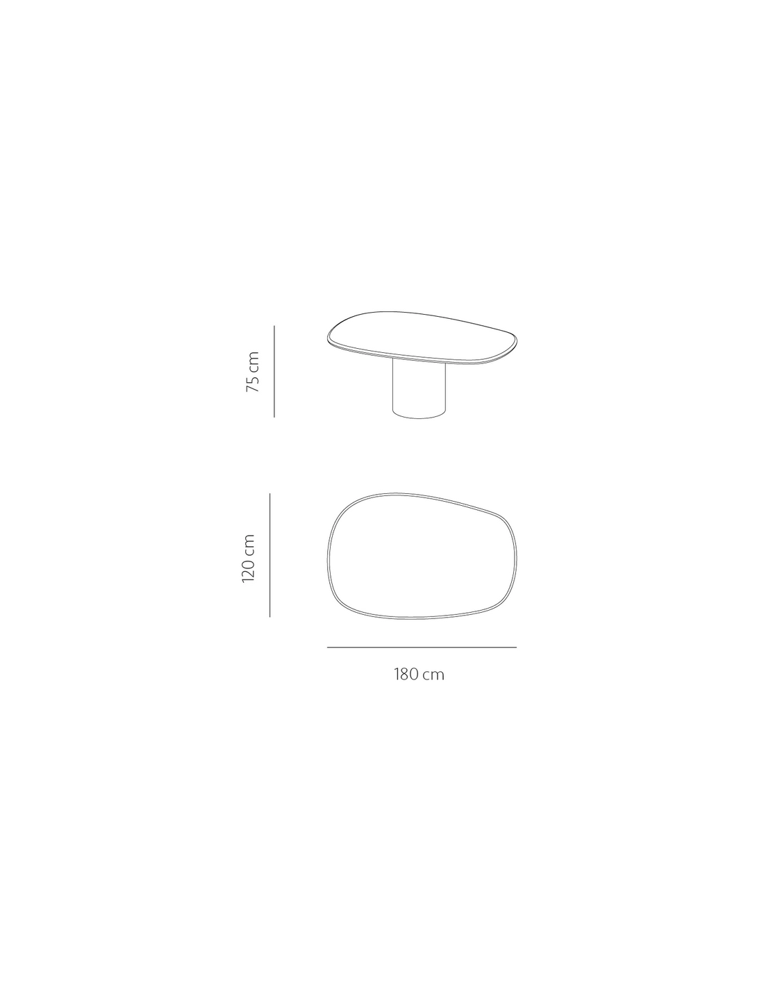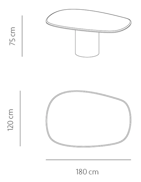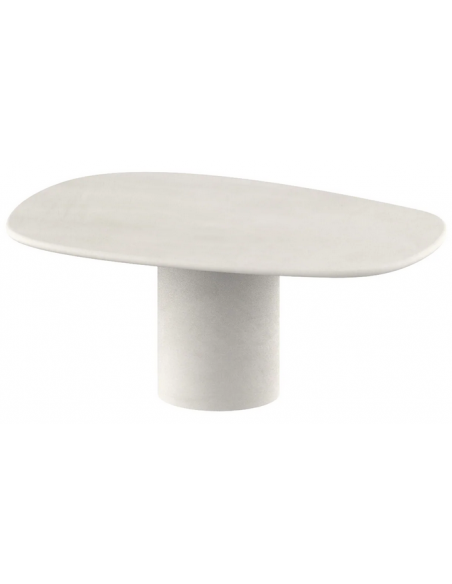 Spisebord udført i et moderne design af råhvid mortex. Spisebordet måler 75 cm i højden og 180 x 120 cm i bredde og dybde. Mortex er en blanding af mineraler og beton, der gør det muligt at fremstille et bord med organiske former, samtidig med at overfladen er gjort vandafvisende.