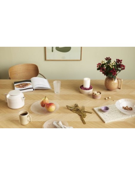 Hübsch Herringbone spisebord udført i et design af egetræ og egetræsfinér. Spisebordet måler 75 cm i højden og 200 x 100 cm i bredde og dybde.