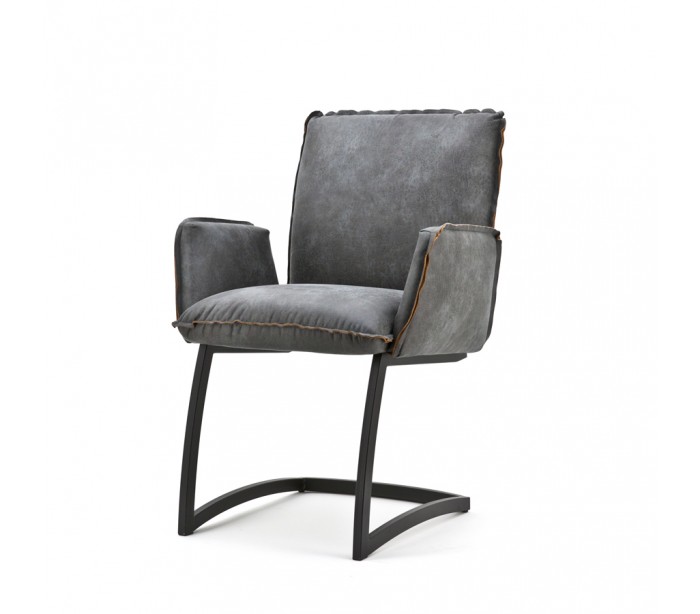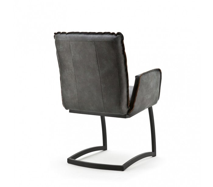 2 x Spisebordsstole med armlæn i et moderne design, fremstillet med stel i lakeret metal, og sæde samt ryg i 70% læder og 30% polyester. En komfortabel spisebordsstol, der vil passe ind i både den moderne, såvel som i den klassiske indretning. Stolen måler 87 cm over ryggen.