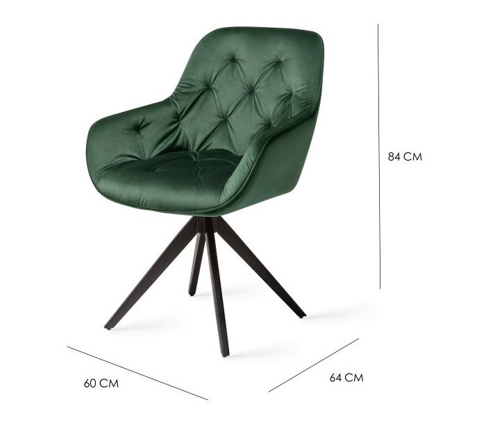 2 x Tara Rotérbare Spisebordsstole H84 cm velour - Sort/Junglegrøn