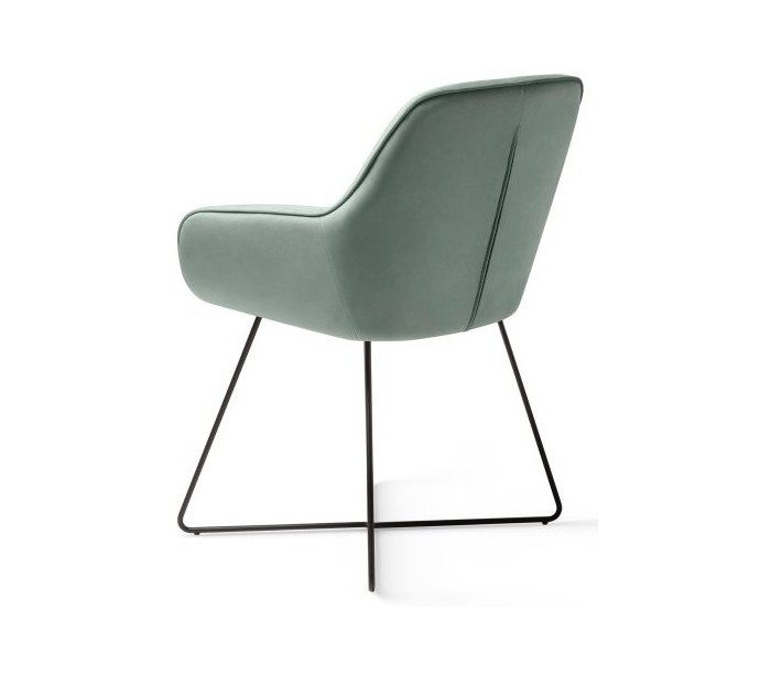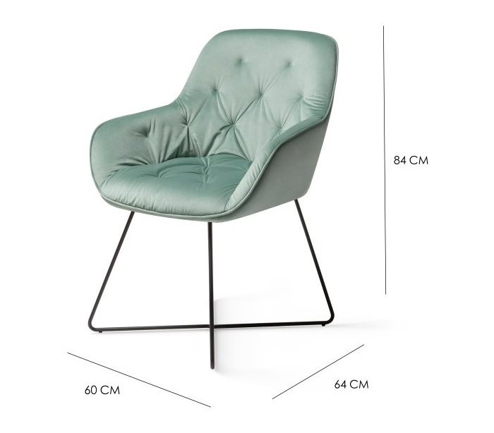 Sæt med 2 Tara spisebordsstole i et moderne design, fremstillet med sæde i jadegrøn velour og stel i sortlakeret metal. Stolen måler 84 cm i højden over ryggen og med siddehøjde på 48 cm.