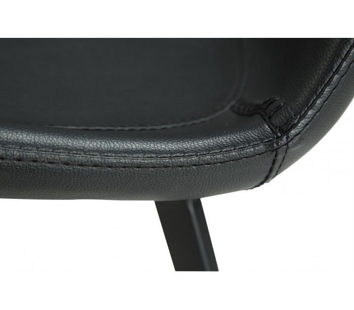 Spisebordsstol i et design fremstillet med sæde i sort kunstlæder og ben i sortlakeret metal. Stolen måler 80 cm i højden over ryggen og med en siddehøjde på 46 cm.