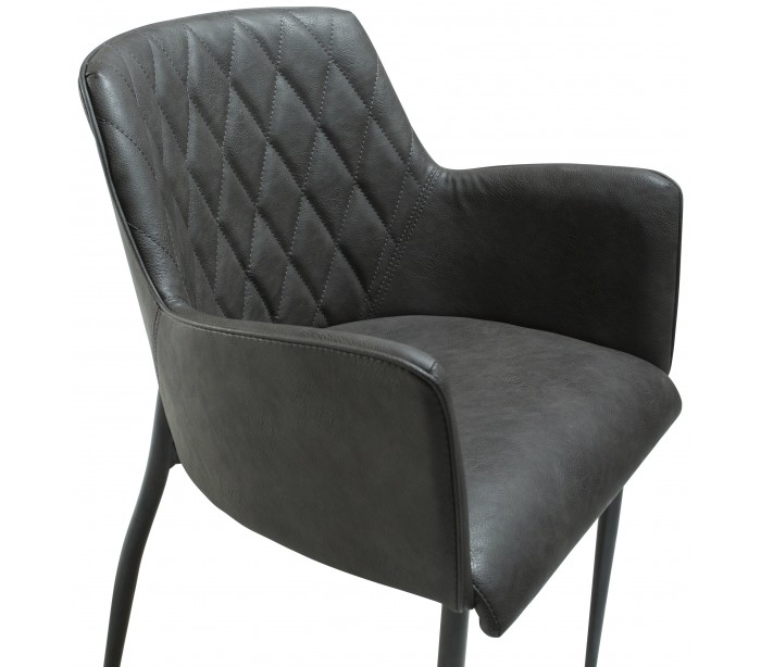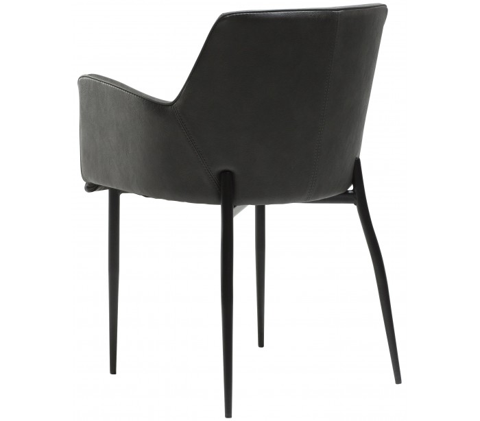 Spisebordsstol i et design fremstillet med sæde i vintage grå kunstlæder og ben i sortlakeret metal. Stolen måler 80 cm i højden over ryggen og med en siddehøjde på 46 cm.