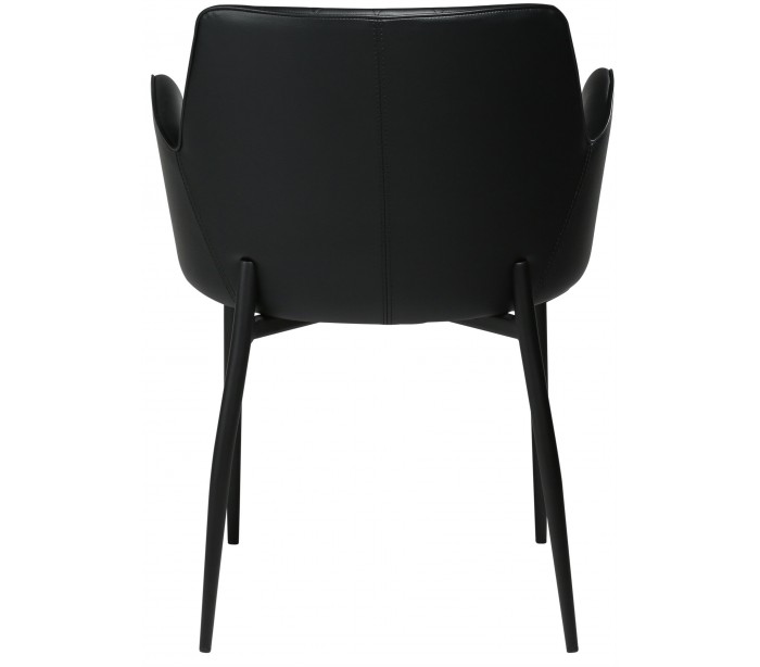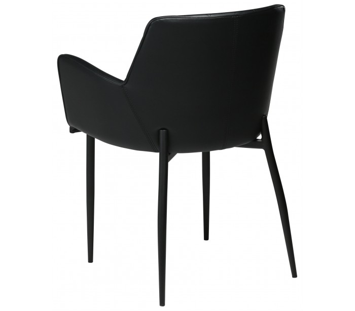 Spisebordsstol i et design fremstillet med sæde i sort kunstlæder og ben i sortlakeret metal. Stolen måler 80 cm i højden over ryggen og med en siddehøjde på 46 cm.