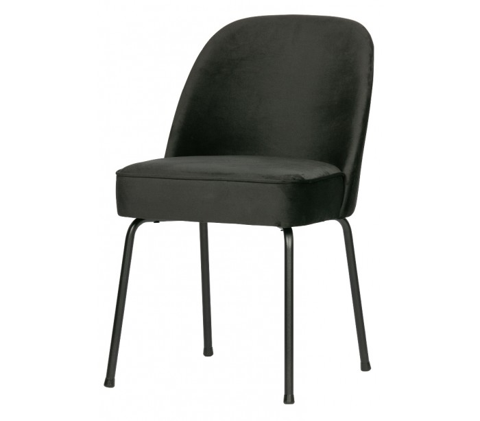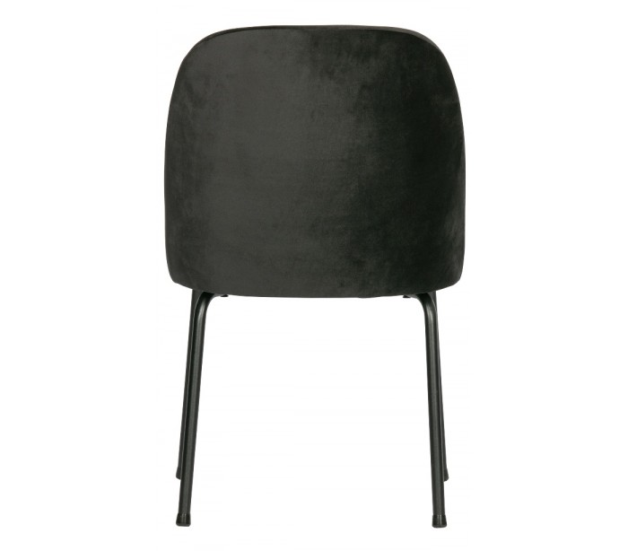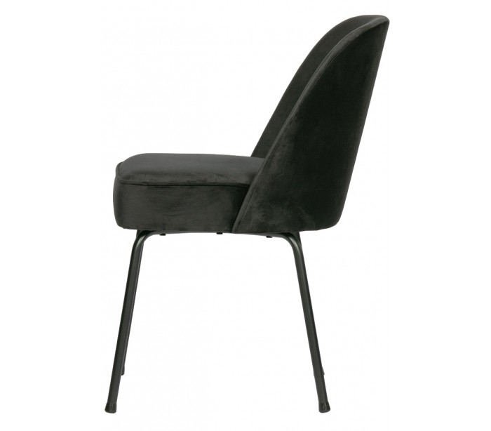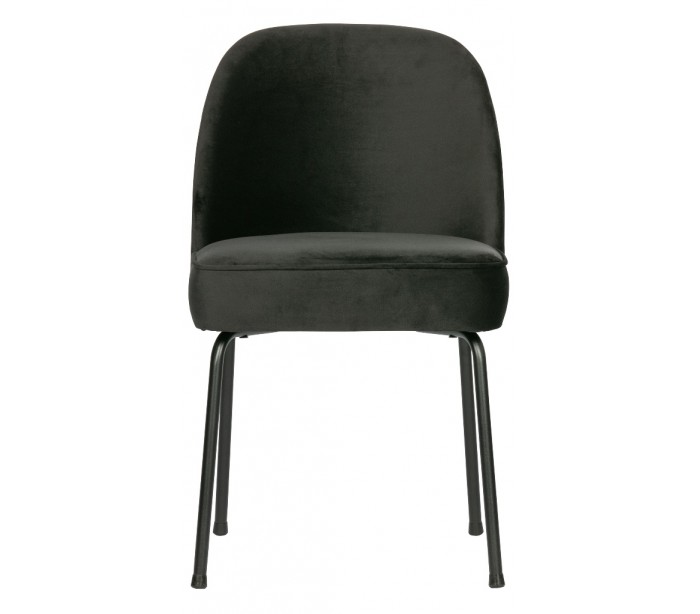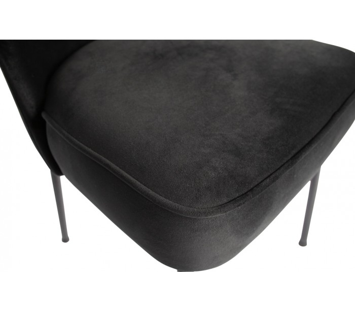 Spisebordsstol i et moderne design, fremstillet i sort velour, og med ben i sortlakeret metal. Stolen måler 82,5 cm i højden og 50 x 57 cm i bredde og dybde. Siddehøjden er 50 cm.