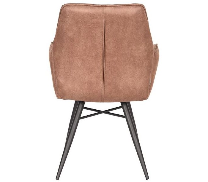 Spisebordsstol udført i et design af vintage brun microfiber og stel i sortlakeret metal. Stolen måler 59 cm i bredden og 88 cm i højden over ryggen og er polstret med højkvalitets skum og pocketfjedre.
