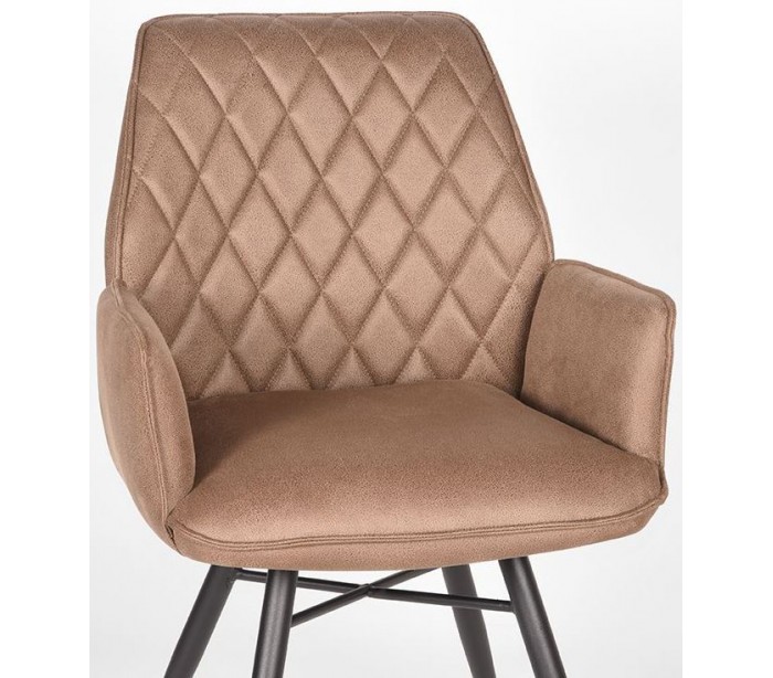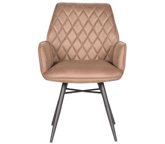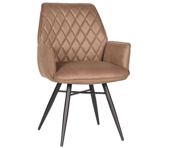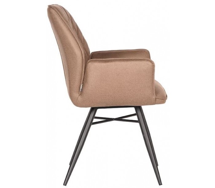 Spisebordsstol udført i et design af vintage stenbrun microfiber og stel i sortlakeret metal. Stolen måler 59 cm i bredden og 88 cm i højden over ryggen og er polstret med højkvalitets skum og pocketfjedre.