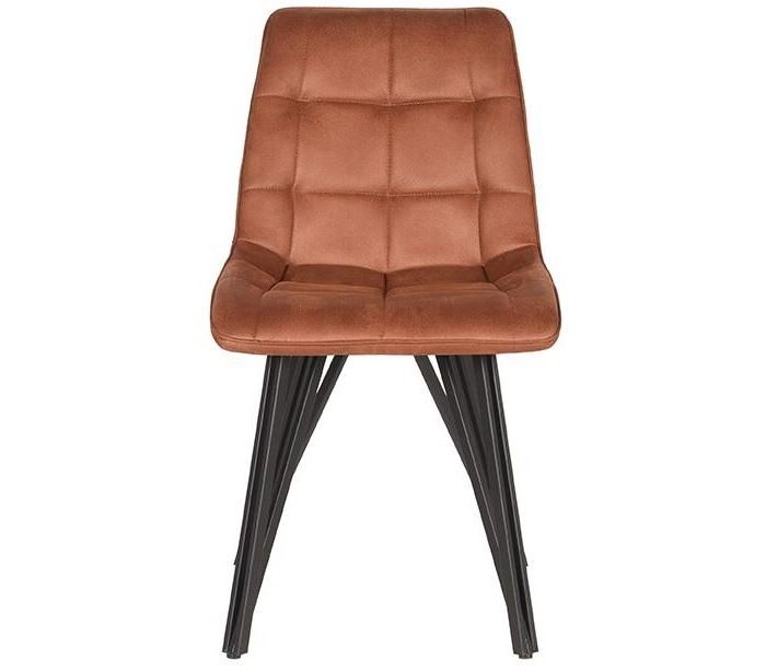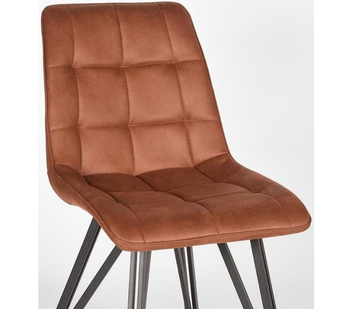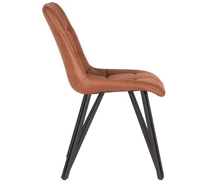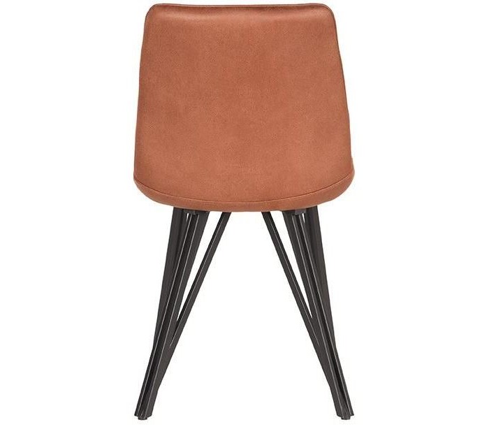 Spisebordsstol udført i et design af vintage cognac microfiber og stel i sortlakeret metal. Stolen måler 50 cm i bredden og 86 cm i højden over ryggen og er polstret med højkvalitets skum.