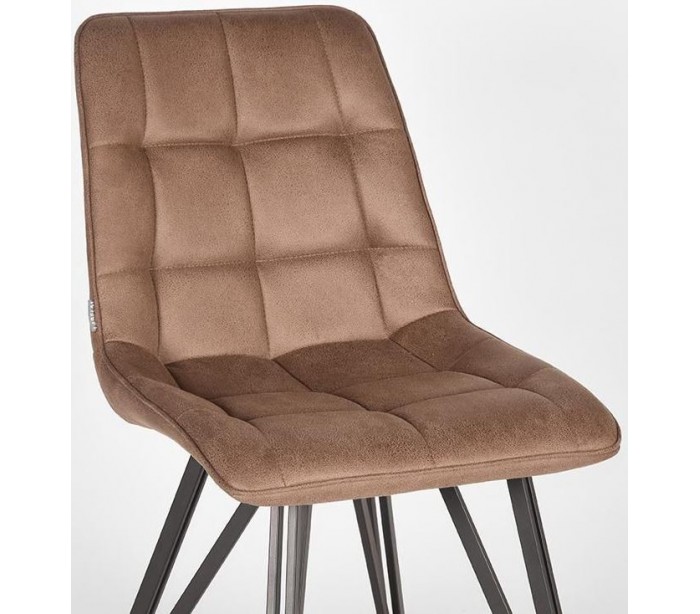 Spisebordsstol udført i et design af vintage stenbrun microfiber og stel i sortlakeret metal. Stolen måler 50 cm i bredden og 86 cm i højden over ryggen og er polstret med højkvalitets skum.