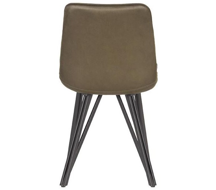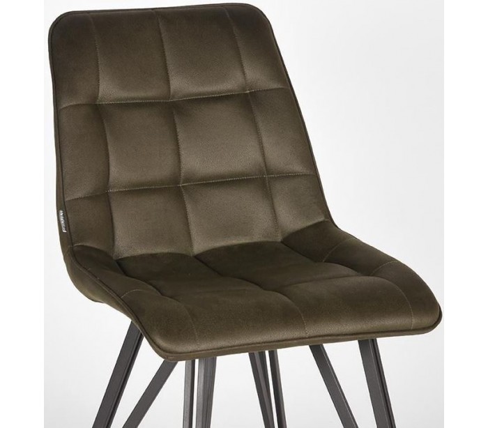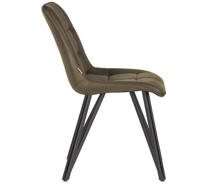 Spisebordsstol udført i et design af vintage armygrøn microfiber og stel i sortlakeret metal. Stolen måler 50 cm i bredden og 86 cm i højden over ryggen og er polstret med højkvalitets skum.