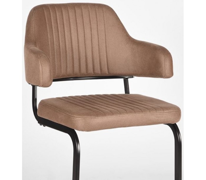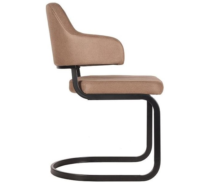 Spisebordsstol udført i et design af vintage stenbrun microfiber og stel i sortlakeret metal. Stolen måler 60 cm i bredden og 87,5 cm i højden over ryggen og er polstret med højkvalitets skum.