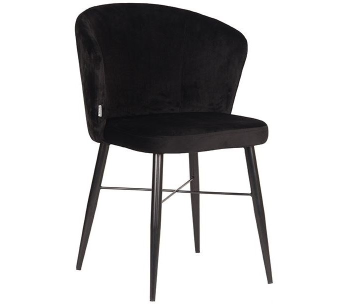 Spisebordsstol udført i et design af sort velour og stel i sortlakeret metal. Stolen måler 58 cm i bredden og 85 cm i højden over ryggen og er polstret med højkvalitets skum.