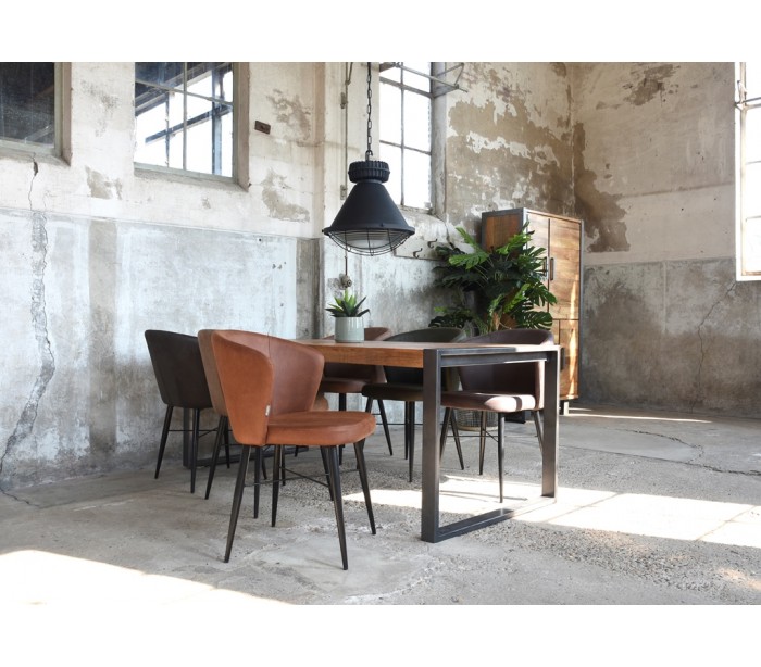 Spisebordsstol udført i et design af vintage antracit microfiber og stel i sortlakeret metal. Stolen måler 58 cm i bredden og 85 cm i højden over ryggen og er polstret med højkvalitets skum.
